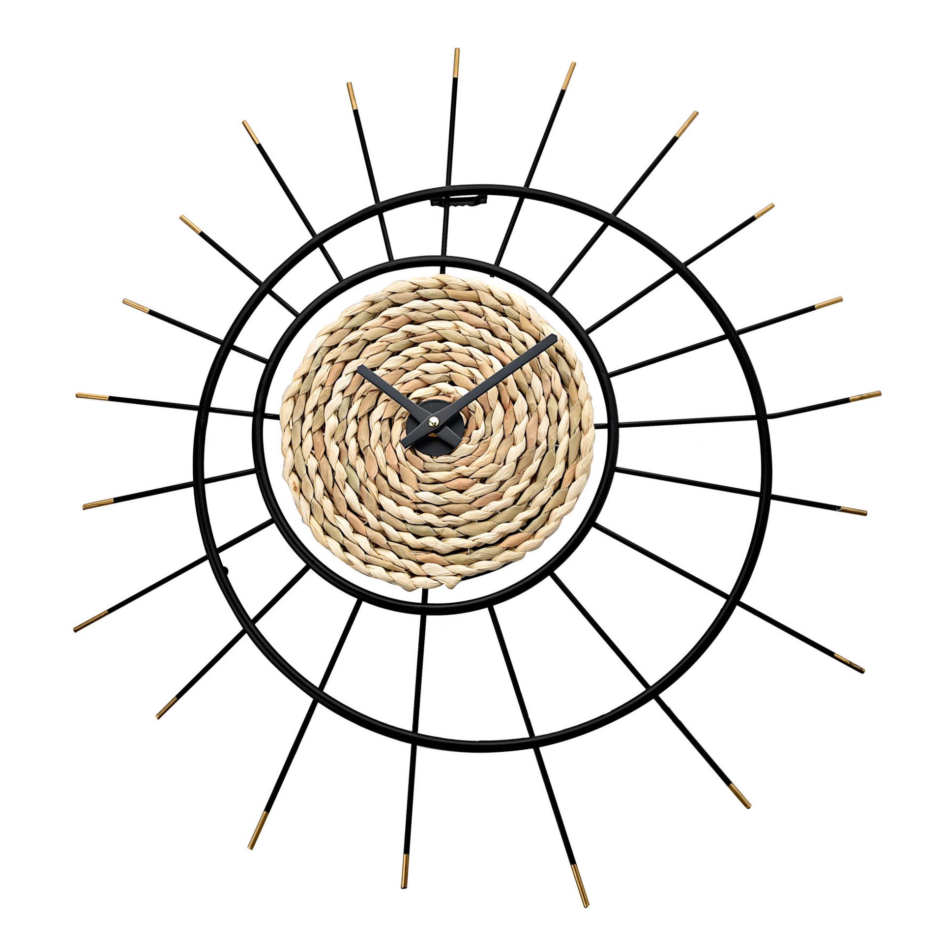 A rope wall clock by HOMETIME®. This truly original wall clock commands attention when displayed at home. The black, metal clock features three hoops, in which sits the rope clock face, complemented by large, modern clock hands.