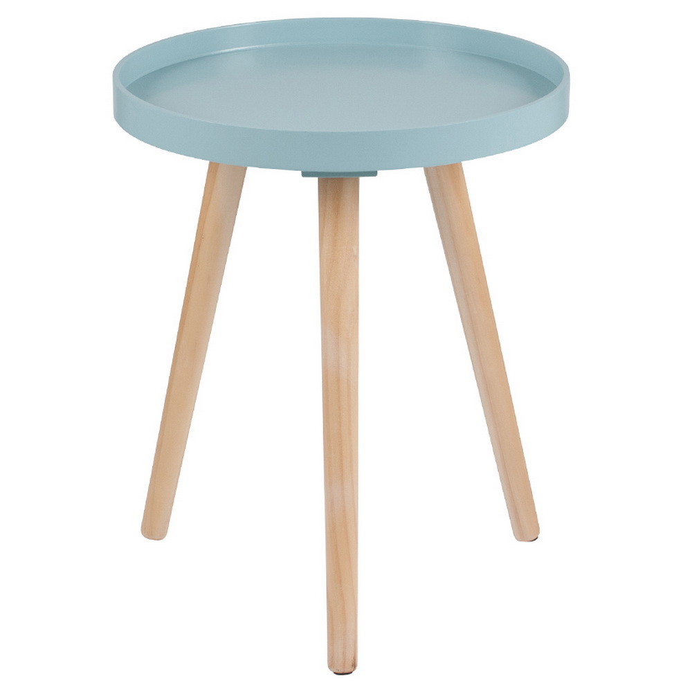 Blue side table. These stylish and contemporary side tables are a great piece for any room. Perfect to display items on or for everyday use. Three wooden screw in legs. Top made from MDF.