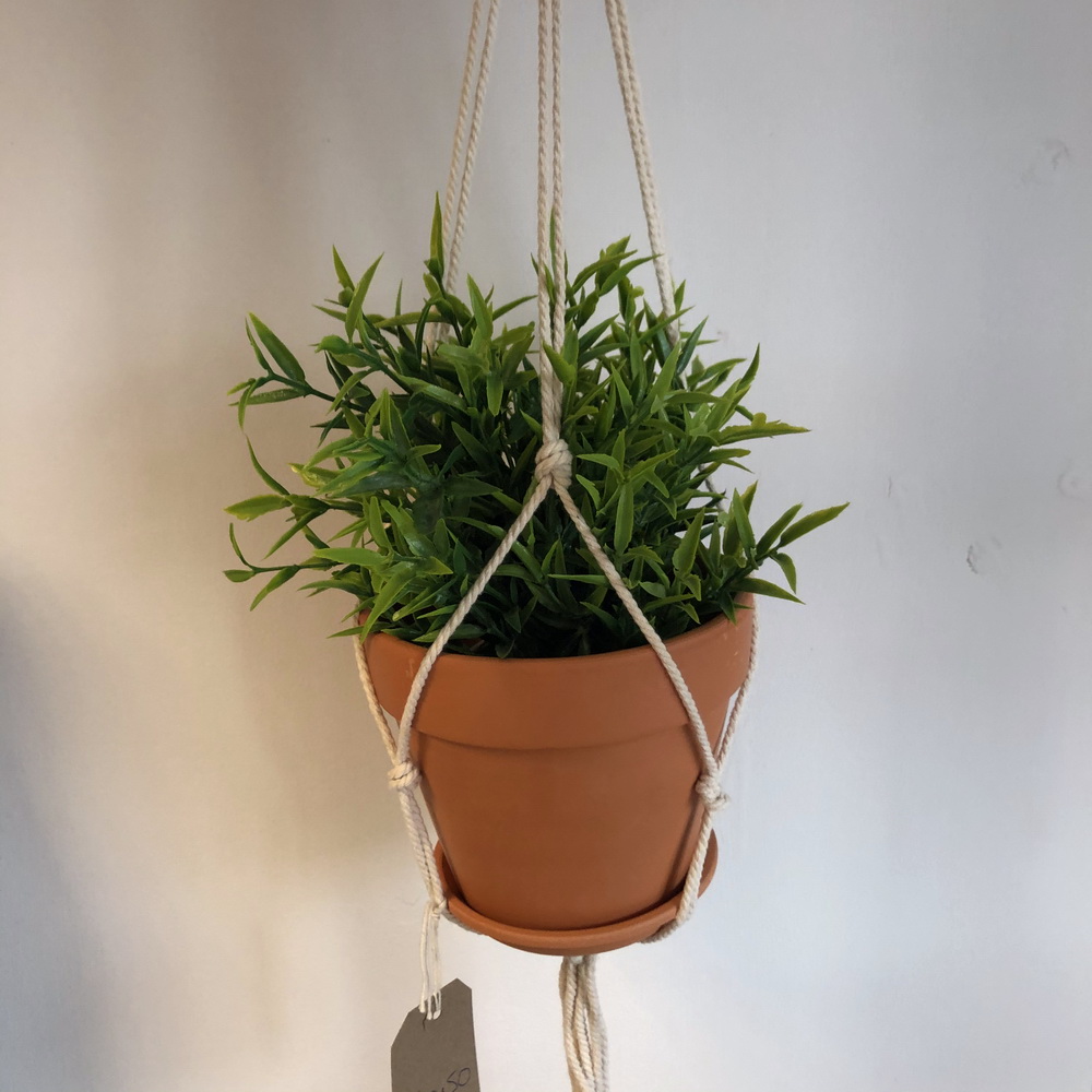 Moroccan Macrame Hanging Planter, White rope with a terracotta pot. This classic look is a great way to add some style into your home. indoor or outdoor use. Great for hanging planters.